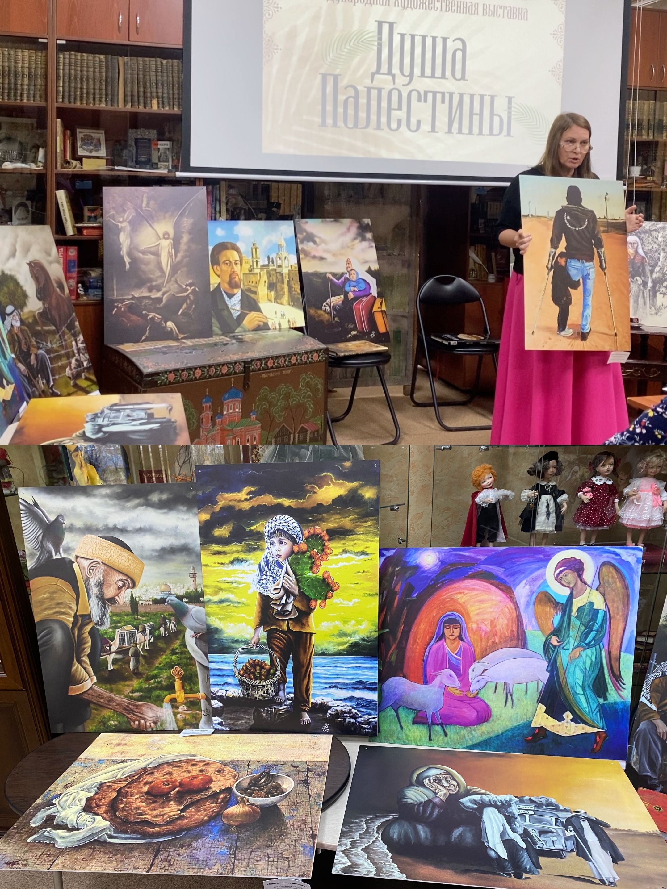 "زيتون الأرض المقدسة"؛ "خبز فلسطيني مسطح" للفنان الفلسطيني سليمان منصور. "الفلاحة الفلسطينية" للفنان الفلسطيني المولود في سوريا، رائد قطناني. "الحب والخبز"؛ "المعلم" للفنان الروسي ميدخات شاكيروف. "حلم عيد الميلاد" للفنانة الروسية أولغا بلاشوفا. "أبي، أنا سندك الآن" للفنانة الروسية مارينا البلعاوي.