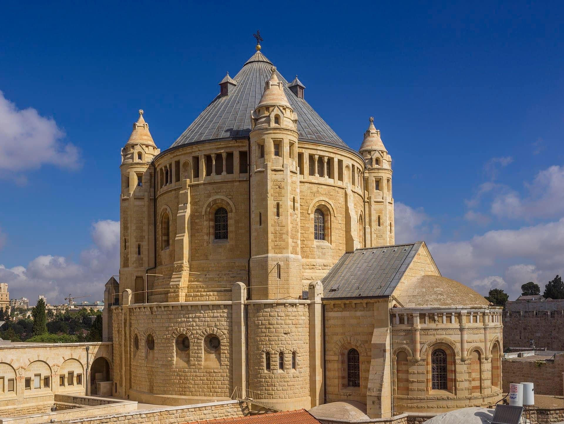 ويذكر ان كنيسة رقاد السيدة العذراء تقع بالقرب من موقع العشاء الأخير للسيد المسيح عليه السلام ، وتسمى بازيليك الافتراض أو الرقاد ، تم وضع حجر الاساس لهذه الكنيسة في ٧ اكتوبر عام ١٩٠٠ ، اكتمل بناء الكنيسة بعد عشر سنوات حيث تم اهدائه في ١٥ أبريل عام ١٩١٥ من قبل غبطة بطريرك اللاتين للأراضي المقدسة ، تم بناء الكنيسة على الطراز الكنسي الروماني الجديد والذي أصبح نمط الدولة الألمانية الامبراطورية الجديدة.