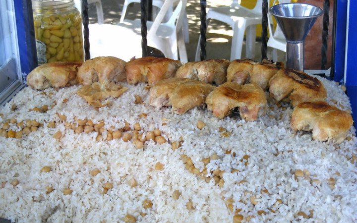 غير أن طبق الأرز بالحمص والدجاج، يتميز من بين الوجبات الأخرى، بأنه يحمل ذكرى الأم ومذاق طبخ يديها، ويمكن للجميع تناول تلك الوجبة، عبر الالتفاف حول عربات تحتوي الأرز والحمّص، وفوقها قطع الدجاج المسلوق، يقدم في المدينة الكبيرة، بسعر منخفض.