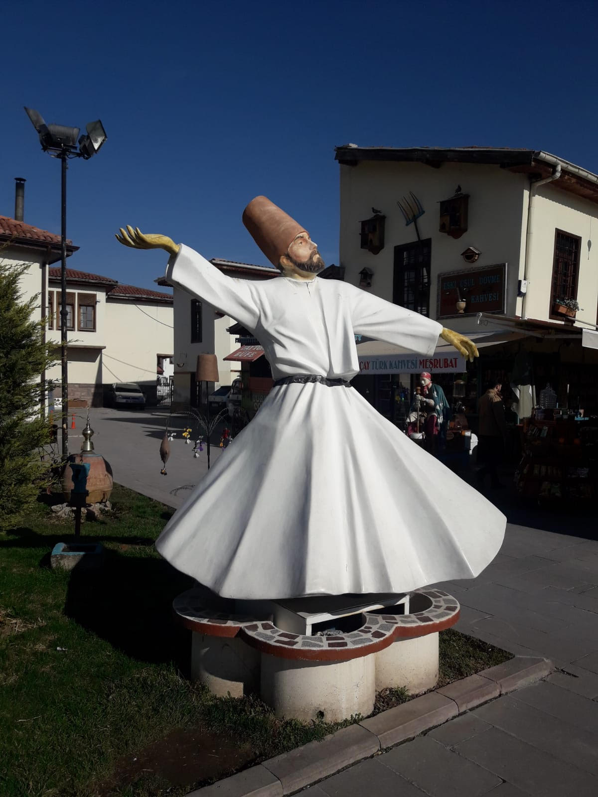 ثم اصطحبني لزيارة مقامه الذي يستدل علية الزائر بسهولة وسط مدينة قونيا، وما أن تدخل المقام حتى تشعر أن روحك تهيم شوقاً ومحبة وتدفع عنك الكره وتسمو بروحك مع الموسيقى التي تنبعث في كل مكان.