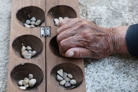 - عندما ينتهي اللاعب الأول من توزيع حبات حفرته، يسمح للاعب الآخر بالبدء باللعب بنفس الطريقة.