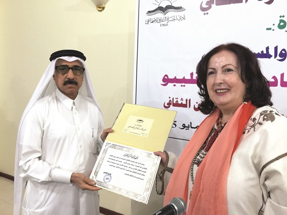 الدوحة – اخبار البلد- كتب المحرر الثقافي في " اخبار البلد" انها لا تعرف الكلل ولا الممل من الحديث عن مدينتها القدس اينما رحلت وفي كل مكان حطت رحالها ، وهذه المرة كانت الدوحة هي العنوان ،انها ابنة القدس الاصلية التي تغتنت اكثر من غيرها من نساء القدس بمدينتها ، فلقد حاضرت الباحثة والكاتبة المقدسية سهاد حسين قليبو، بصالون الجسرة الثقافي في العاصمة القطرية الدوحة تحت عنوان «القدس بين الحاضر والمستقبل». هذه المحاضرة التي حظيت بتغطية اعلامية واسعة من قبل الصحف القطرية والتي خصصت مساحات واسعة للحديث عنها ، ونحن في " اخبار البلد" نقوم بنشر ما كتبته وسائل الاعلام القطرية .