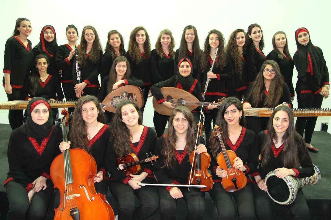 فرقة بنات القدس وجولة في مشوارها الفني : قدمت "بنات القدس" حفلها الموسيقي هذا بعد حصولها على جائزة أفضل جوقة في الشرق الأوسط من مهرجان دبي للجوقات في شهر آذار الماضي، وأثبتت أنه يمكن للمرأة والبنت الفلسطينية أن تكون ندا موسيقيا مثلما كانت ندا نضاليا اذا توفرت اليها الفرصة. وجاء تأسيس فرقة بنات القدس لكسر ما درج في منظور الجمهور المتذوقللموسيقى بشكل عام والجمهور العربي بشكل خاص من حصر دور المرأة في الغناء فقط، إلا أن المعهد الوطني للموسيقى ومنذ لحظة تأسيسه في العام 1993 أحدث تميزا ملحوظافي مستوى طالباته في العزف على مختلف الآلات الموسيقية العربية والغربية، وبرز ذلك في نسبة المشاركة العالية للطالبات في المجموعات الموسيقية المختلفة من أوركسترات موسيقيةوجوقات، إضافة إلى المسابقات و البرامج والمشاريع الموسيقية الأخرى، وعلى الدوام كانت إدارة المعهد مصرة على أن تحدث هذا الفارق الإيجابي من خلال خلق بيئة تعليمية وتنظيمية مناسبةلمشاركة الطالبات في العزف والتعلم ومن ثم التعليم الموسيقي. وفي نفس السياق، وفي السنوات الأخيرة، برزت مجموعة من العازفات الماهرات في العزف على آلاتهن الموسيقية فيفرع القدس، سواء كانت هذه الآلات عربية مثل: العود، القانون والايقاع، أو الآلات الغربية التي يمكن تطويعها واستخدامها في الموسيقى العربية مثل: الكمان، التشيلو، الكونترا باص،فلوت وكلارينيت. هذا التميز للطالبات المقدسيات، تطلب من المعهد أن يكون له دورا مضاعفا في دعمهن موسيقيا، لكي تكون مساهمة
