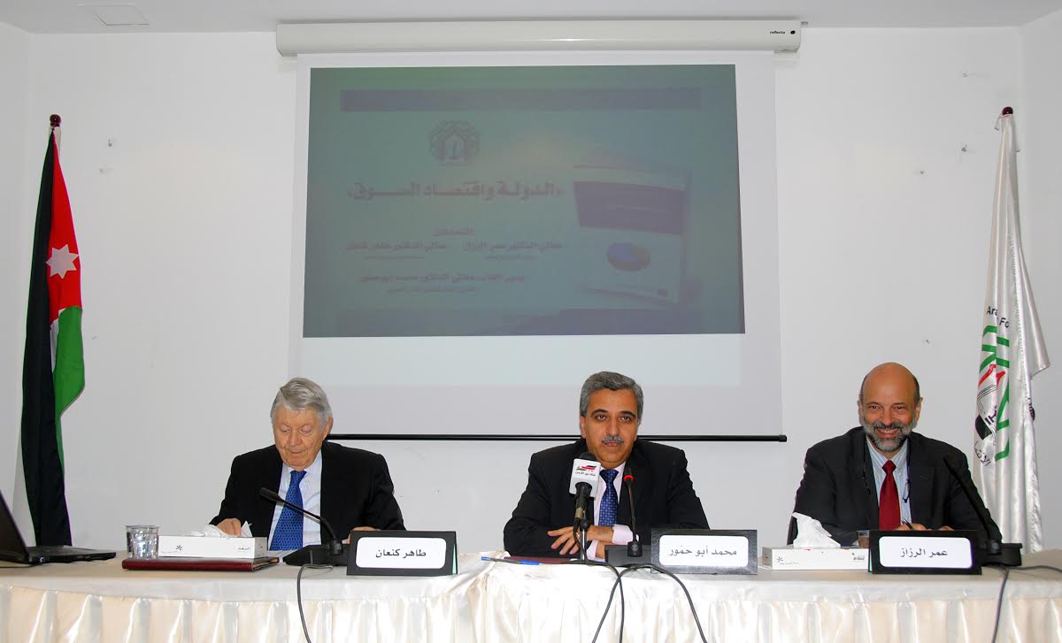 عمان - اخبار البلد- ضمن اللقاءات الأسبوعية لمنتدى الفكر العربيّ أقيم حفل إشهار لكتاب: " الدولة واقتصاد السوق: قراءات في سياسات الخصخصة وتجاربها العالمية والعربية"، وذلك في قاعة الحسن بن طلال في مقرّ المنتدى. ويأتي هذا اللقاء، في سياق التفاعل مع المفكرين والمؤلفين خاصة في ظلّ تواضُع المجهود البحثي الاقتصادي، وندرة المؤلفات المتخصِّصة في هذا المجال في العالم العربي. وهو ما يمنح الكتاب قيمة معرفيَّة متقدِّمة. وبخاصّة أنَّ مؤلِّفيْه: الدكتور طاهر كنعان ود. حازم رحاحلة، ممن لهم بحوث ودراسات وخبرات عمليّة في إدارة السياسات الماليَّة والاقتصادية ،ومما يؤكد اهمية هذا المجهود البحثي هو طبيعة الدَّورة الاقتصاديَّة العالميَّة الَّتي فرضتها التَّحوُّلات، واتِّجاهاتها الضّاغطة، التي تُملي مواجهة الحقائق كما هي في الواقع، والاستجابة للمعطيات العمليَّة الَّتي أفرزها اقتصاد السُّوق.