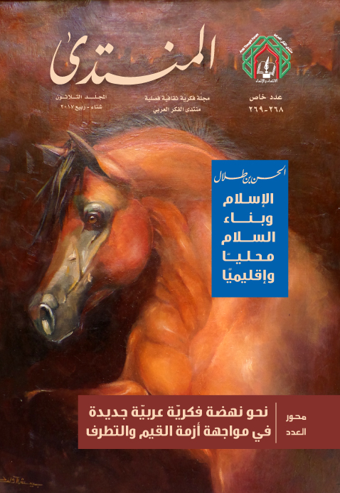 عمان - اخبار البلد- صدر عن منتدى الفكر العربي عدد جديد من مجلة "المنتدى" الفكرية الثقافية الفصلية في 294 صفحة، يشتمل على مجموعة من الدراسات والمقالات ضمن محور "نحو نهضة فكرية عربية جديدة في مواجهة أزمة القيم والتطرف"، ويتصدر العدد نصّ محاضرة سمو الأمير الحسن بن طلال في جامعة الأزهر بالقاهرة التي ألقاها بتاريخ 12/10/2016 تحت عنوان "الإسلام وبناء السلام محلياً وإقليمياً"، والتي دعا فيها إلى وجوب التركيز على رسالة الاعتدال الإنسانية والسلام التي ينادي بها الإسلام، وحماية هذا الدين من أن يصبح مطية للفئات المُضلَّلة والمُضلِّلة وأصحاب الأهواء؛ مشيراً سموّه إلى ضرورة التشبيك بين المبادرات والنصوص المرجعية التي تعبر عن نهج إصلاحي في الخطاب الإسلامي، وأبرزها: "رسالة عمّان"، و"البيان العالمي في مواجهة التطرف والإرهاب" (2014)، و"إعلان مراكش عن المواطنة والأقليات في المجتمعات ذات الأكثرية المسلمة" (2016).