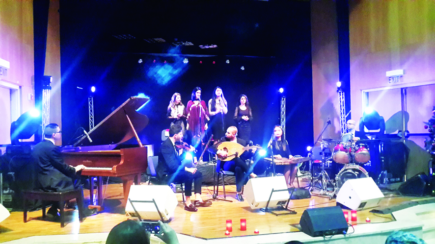 القدس - اخبار البلد- كتب محمد الشنطي - أحيت فرقة مزاج المقدسية في مسرح فندق النوتوردام أمسية موسيقية غنائية خاصة بالقدس وأعياد الميلاد المجيدة ، وسط تفاعل جماهيري مقدسي كبير ،والذي ابدى مدى إعجابه بالاغنيات الوطنية الملتزمة والتي كانت القدس حاضرة في معظمها ، كما تخللت الامسية أغنيات خاصة بعيد الميلاد المجيد . واعرب العديد من الحضور بعد الحفل عن سعادتهم بهذا الاداء المميز والمهني من قبل الفرقة التي ادخلت الفرحة لقلوب المقدسيين .
