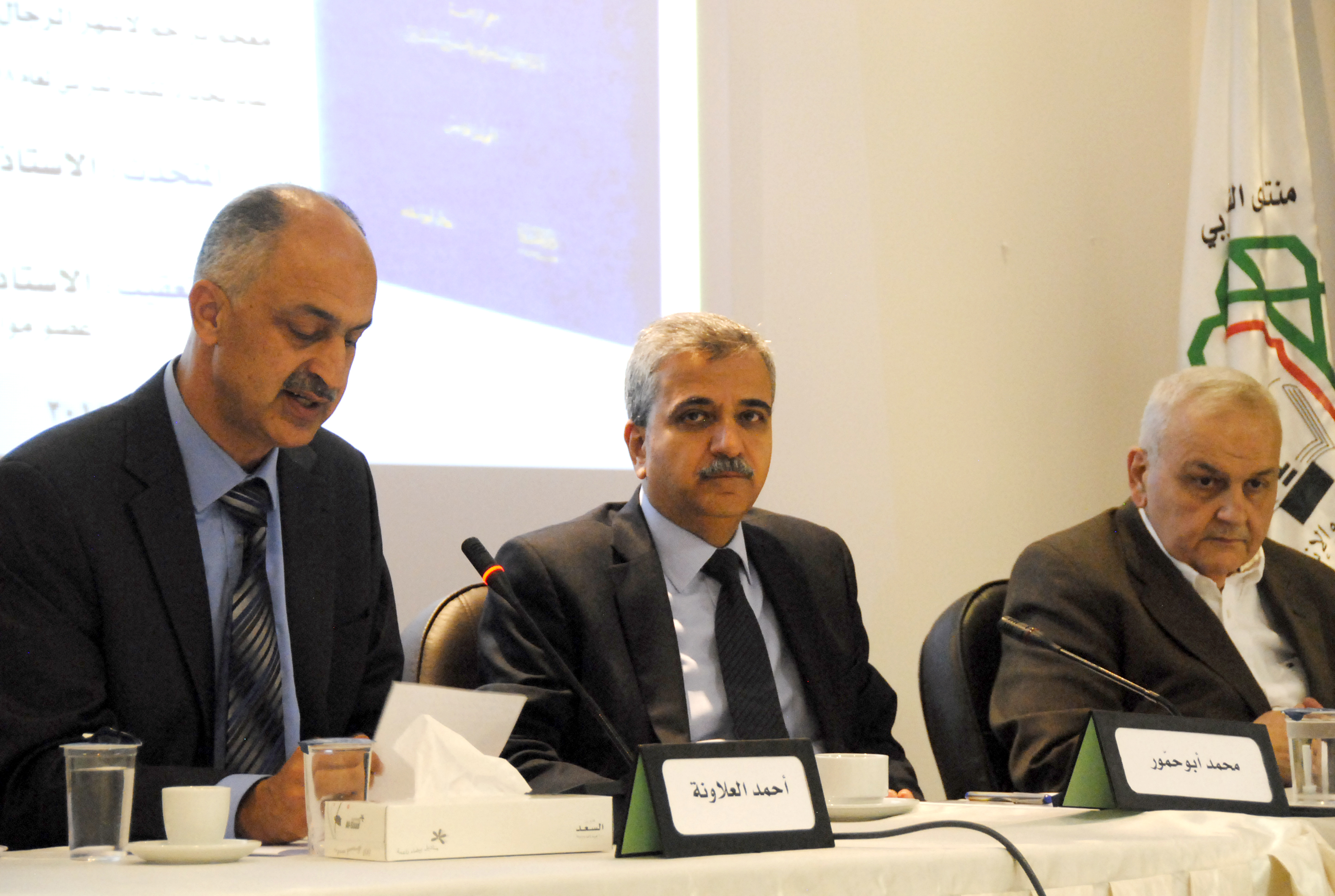 أدار اللقاء وشارك فيه الأمين العام للمنتدى د. محمد أبوحمور، والباحث العراقي أ.د. وليد محمود خالص عضو مجمع اللغة العربية بالقاهرة ومجمع اللغة العربية الأردني.