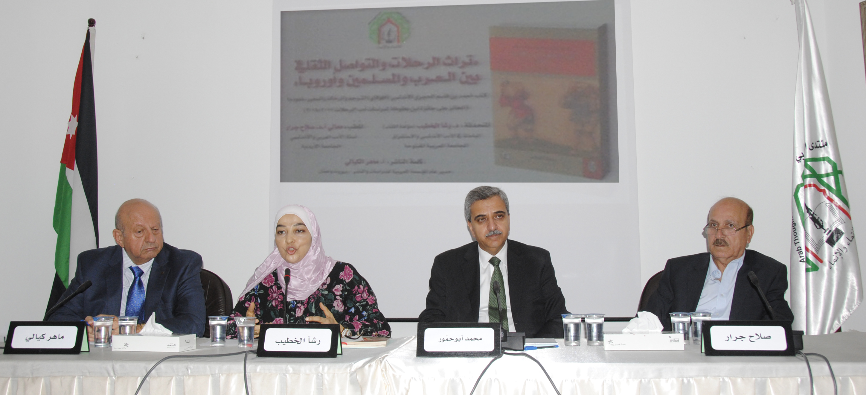 وشارك في اللقاء الذي أداره الأمين العام لمنتدى الفكر العربي ووزير المالية الأسبق د. محمد أبوحمّور، كل من مؤلفة الكتاب د. رشأ الخطيب، وأستاذ الأدب العربي والأندلسي في الجامعة الأردنية ووزير الثقافة الأسبق أ.د. صلاح جرار بتعقيب حول الكتاب وموضوع اللقاء، كما ألقى الناشر مدير المؤسسة العربية للدراسات والنشرالأستاذ ماهر الكيالي كلمة بالمناسبة حول مشروع "ارتياد الآفاق"، وجرى عرض إصدارات هذا المشروع من كتب الرحلات العربية والدراسات حول الرحالة ورحلاتهم ولا سيما إلى أوروبا وغيرها من قارات العالم.