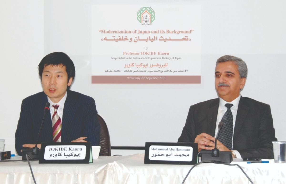 وتطرق البروفسور الياباني إلى دراسة الكيفية التي يمكن من خلالها الاستفادة من تحديث المجتمع الياباني في بحث انعكاسات التحديث على المجتمع في الأردن، الذي يواجه حاليًا متغيرات وتحديات سريعة، ومنها مثلاً تعزيز الأمن القومي وإجراء إصلاحات اجتماعية اقتصادية.