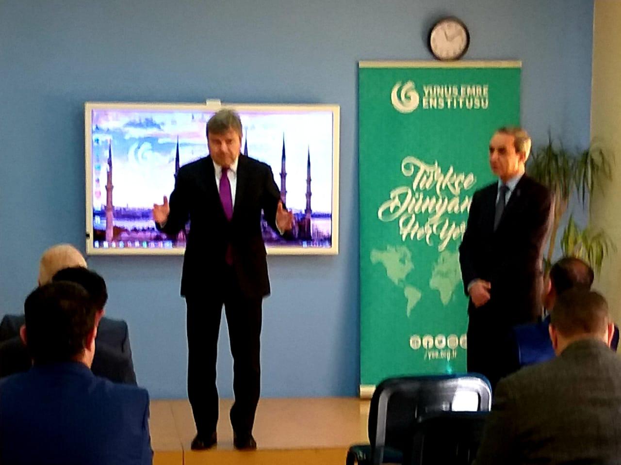 حيث استقبل مدير المركز جنكيز إروغلو ضيوفه وقدم معلومات حول انشطة المركز ودورات اللغة التركية والمنح التركية.