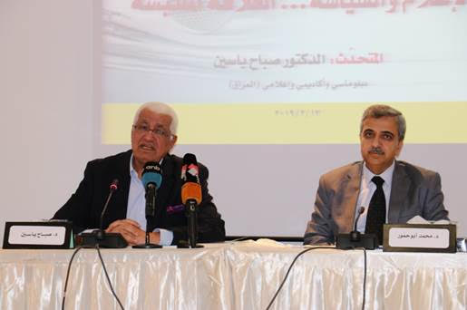 عمّان – أخبار البلد - ألقى السفير الأسبق والأكاديمي والإعلامي العراقي د. صباح ياسين محاضرة في منتدى الفكر العربي، تناول فيها العلاقة القائمة والملتبسة بين السياسة والإعلام، والدور الذي يمكن أن تؤديه ممكنات الإعلام وأساليبه المتنوعة في إطار التوافق أو التعارض في الحياة الإنسانية، وضمن الفضاء التواصلي التشاركي الذي تلتقي فيه المصالح الدولية على صعيد السياسة والثقافة والاقتصاد والمجتمع .