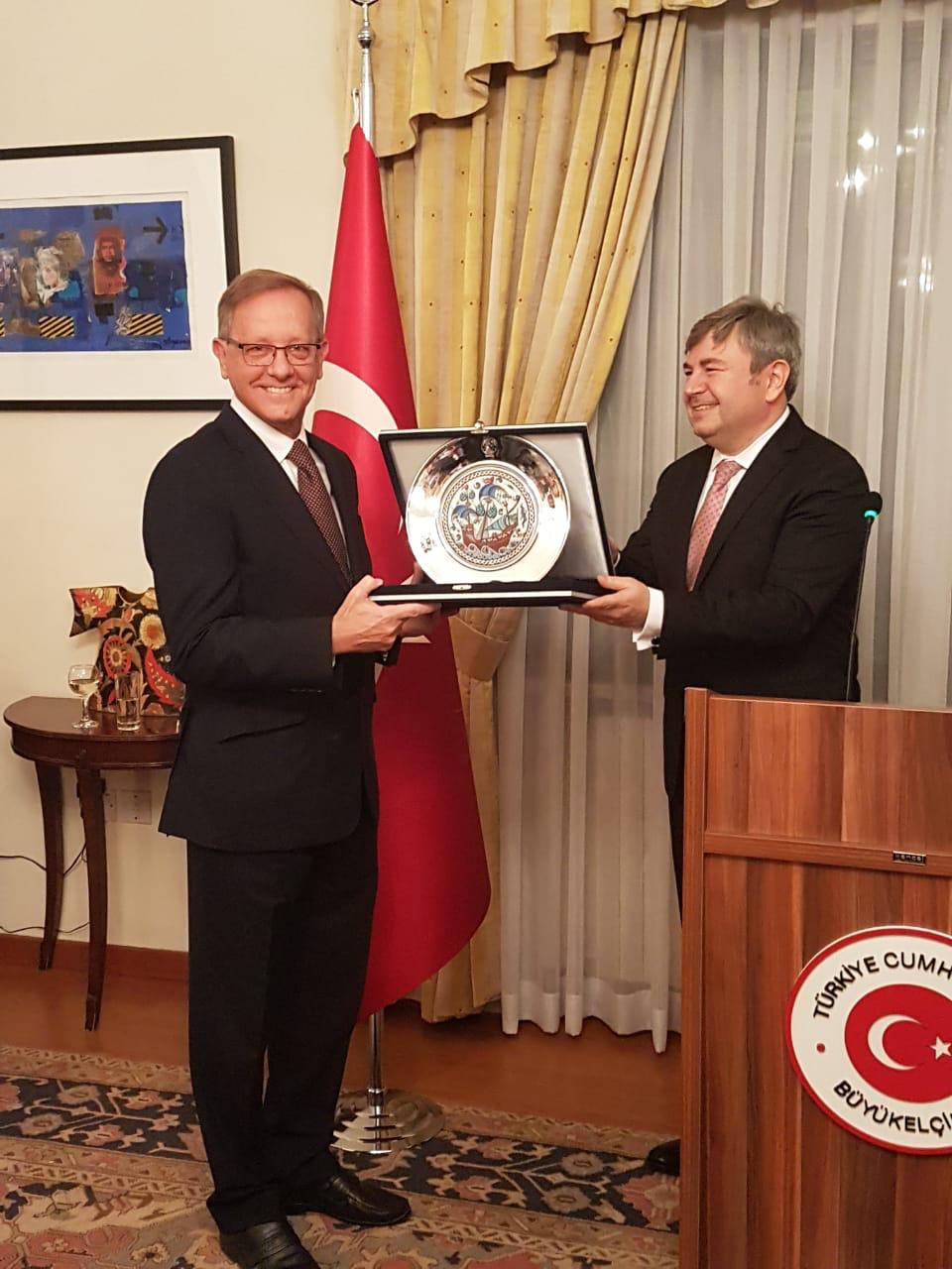 عمان- أخبار البلد - أقام السفير مراد كاراغوز في مقر إقامته حفل وداع لمدير عمليات الاردن لوكالة الأمم المتحدة لإغاثة وتشغيل اللاجئين الفلسطينيين في الشرق الأدنى (الأونروا) السيد روجر ديفيس.