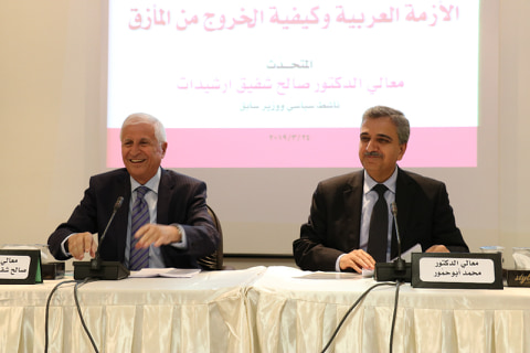 من جهته، أوضح د. صالح ارشيدات في محاضرته بعد أن استعرض الأوضاع والتحولات العربية والدولية وخاصة خلال العقدين الماضيين، أن العرب يملكون مقومات إعادة النهوض الإنساني والحضاري والثقافي المشترك للدول والشعوب العربية، التي هي متجانسة ثقافياً ومتوحدة في الوجدان والتاريخ والآمال والمصير، شريطه اعتماد مشاركة الشعوب العربية في اتخاذ القرار، وإعادة إحياء النظام العربي على أسس حضارية، والاهتمام بالإنسان العربي وحقوقه الأساسية في الحرية والعدالة الاجتماعية والحياة الكريمة، وإشراكه في تحمّل المسؤولية، ضمن سيادة القانون وحقوق الإنسان في الدولة المدنية الحديثة.