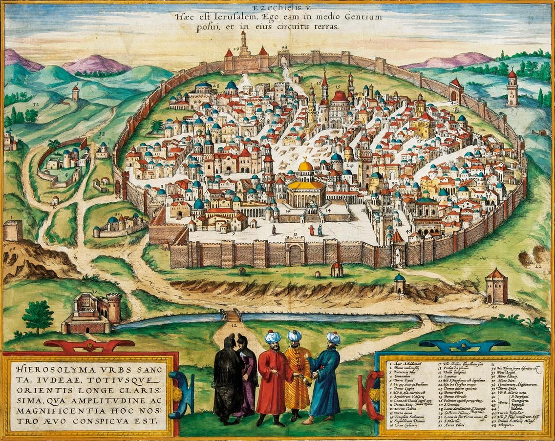 • ونختم بما كتبه العُليمي واصفاً المنطقة قبل بناء الاسوار ..." حارة بني الحارث وهي خارج البلد عند القلعة ( خط داود عليه السلام ) هو الشارع الأعظم وابتداؤه من باب المسجد الأقصى المعروف بباب سلسلة إلى باب المحراب وهو باب المدينة المعروف الآن بباب الخليل وهذا الخط على اقسام معروفة فمن باب المسجد إلى دار القرآن السلامية يعرف بسوق الصاغة ومن باب السلسلة إلى باب حارة الشرف يعرف بسوق القشاش ومنه إلى سوق الفحم يعرف بسوق المبيضين ومن باب الخان إلى قنطرة الجبيلي يعرف بسوق الفحم ومن قنطرة الجبيلي إلى درج الخرافيش يعرف بسوق الطباخين ومنه باب حارة اليهود يعرف بخط الوكالة وهو خان عظيم وقف على مصالح المسجد الأقصى يؤجر في السنة بنحو اربعمائة دينار يباع فيه اصناف البضائع ومن باب حارة اليهود إلى خان المصرف يعرف بسوق الحريرية ومن خان المصرف إلى باب المدينة يعرف بخط عرصة الغلال فهذا كله داخل في عموم خط داود عليه السلام والسبب في تسميته بخط داود هو ان سيدنا داود كان له سرداب تحت الأرض من باب المسجد المعروف بباب السلسلة إلى القلعة التي تعرف قديما بمحراب داود وكان منزله بها وهذا السرداب موجود وفي بعض الأوقات يكشف بعضه ويشاهد وهو اقبية معقودة بالبناء المحكم كان يمشي فيه من منزلة إلى المسجد.