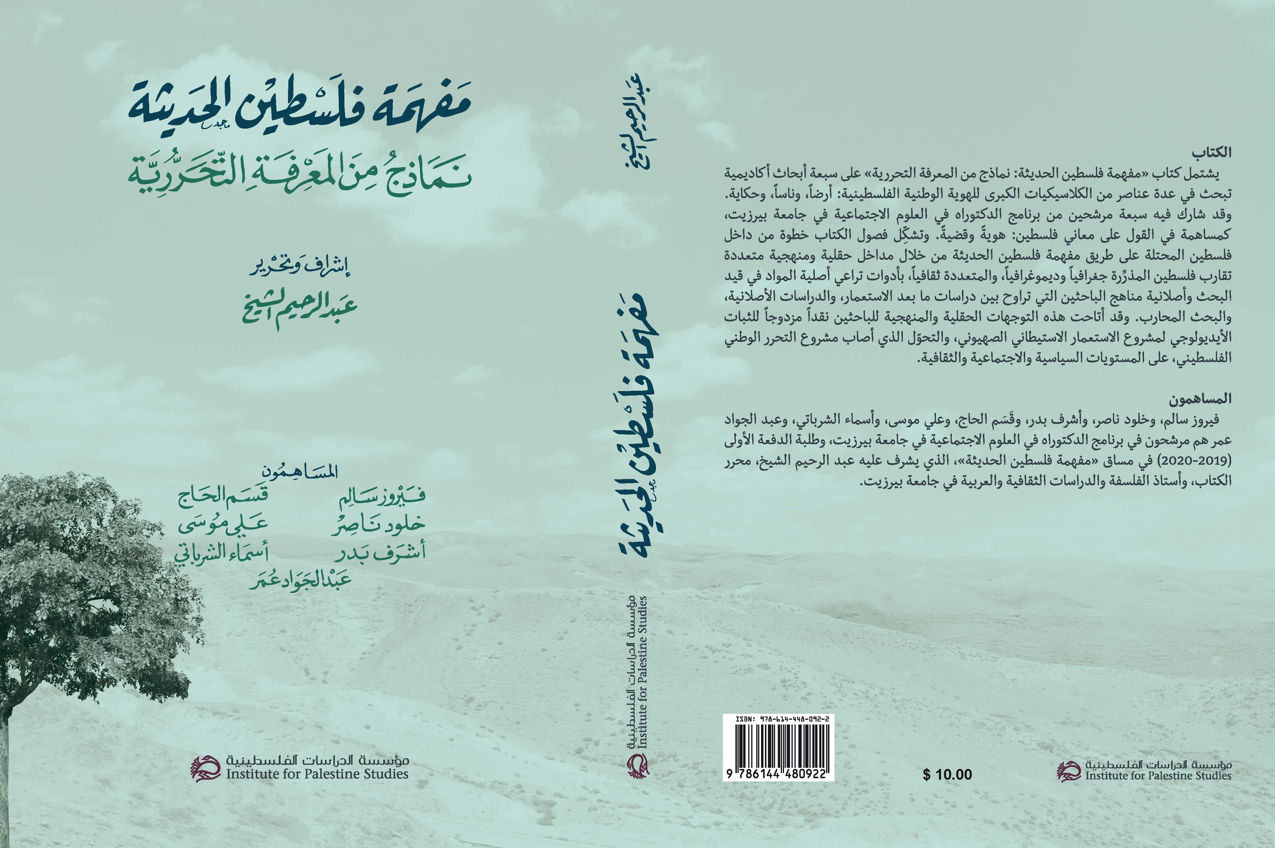 القدس - أخبار البلد - أصدرت مؤسسة الدراسات الفلسطينيّة بالتعاون مع جامعة بيرزيت، كتاب "مفهمة فلسطين الحديثة: نماذج من المعرفة التحررية" من إشراف وتحرير عبد الرحيم الشيخ؛ أستاذ الفلسفة والدراسات الثقافية والعربية في جامعة بيرزيت، وشارك فيه عدد من مرشحين/ات في برنامج الدكتوراه في العلوم الاجتماعية، هم/ن: فيروز سالم، وخلود ناصر، وأشرف بدر، وقسم الحاج، وعلي موسى، وأسماء الشرباتي، وعبد الجواد عمر.