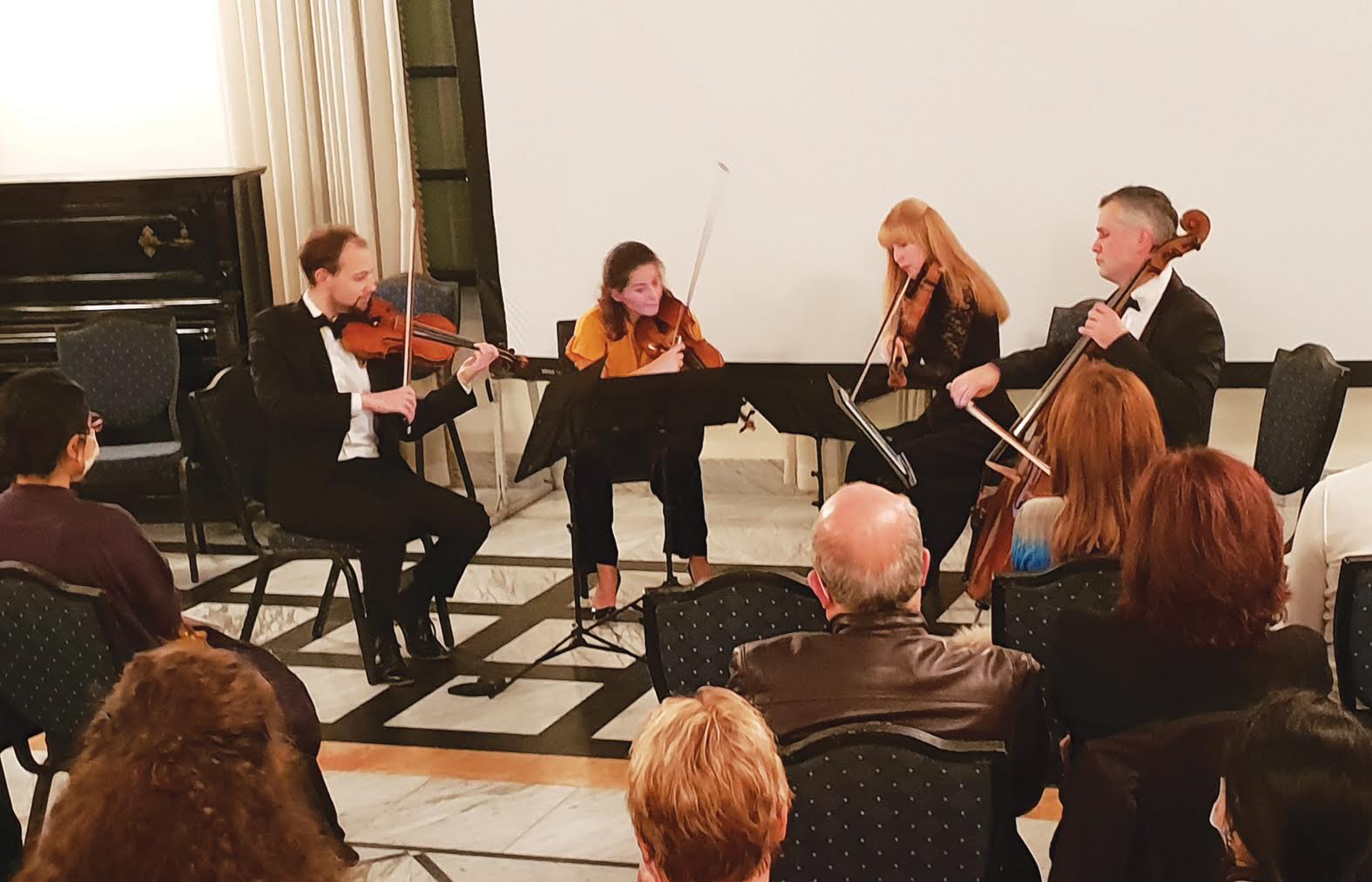 القدس - أخبار البلد - بمناسبة قرب عيد الميلاد المجيد أحيت الفرقة الرباعية اونير الشهيرة القادمة من النمسا حفلا موسيقيا كلاسيكيا في قاعة الباشا في فندق الامريكان كولوني بالقدس وذلك بتنظيم من مركز ويلي براندت الألماني وبالتعاون مع المنتدى الثقافي النمساوي وبالتنسيق مع فندق الاميريكان كولوني، حيث تخلل الحفل مقطوعات موسيقية كلاسيكية شهيرة، نالت اعجاب الجمهور المقدسي. واستمر ذلك الحفل الممتع اكثر من ساعتين متواصلتين . وسط استمتاع الحضور وأكدت مديرة المركز بيترا كلوس ل "اخبار البلد " على أهمية تفعيل النشاط الثقافي في المدينة المقدسة ليشمل ذلك مختلف الأطر الثقافية الأخرى ، لكي يتنسى لمعظم المبدعين المقدسيين من المشاركة في عرض إبداعاتهم الثقافية ، اضافة الى تعزيز التبادل الثقافي الأوروبي المقدسي .