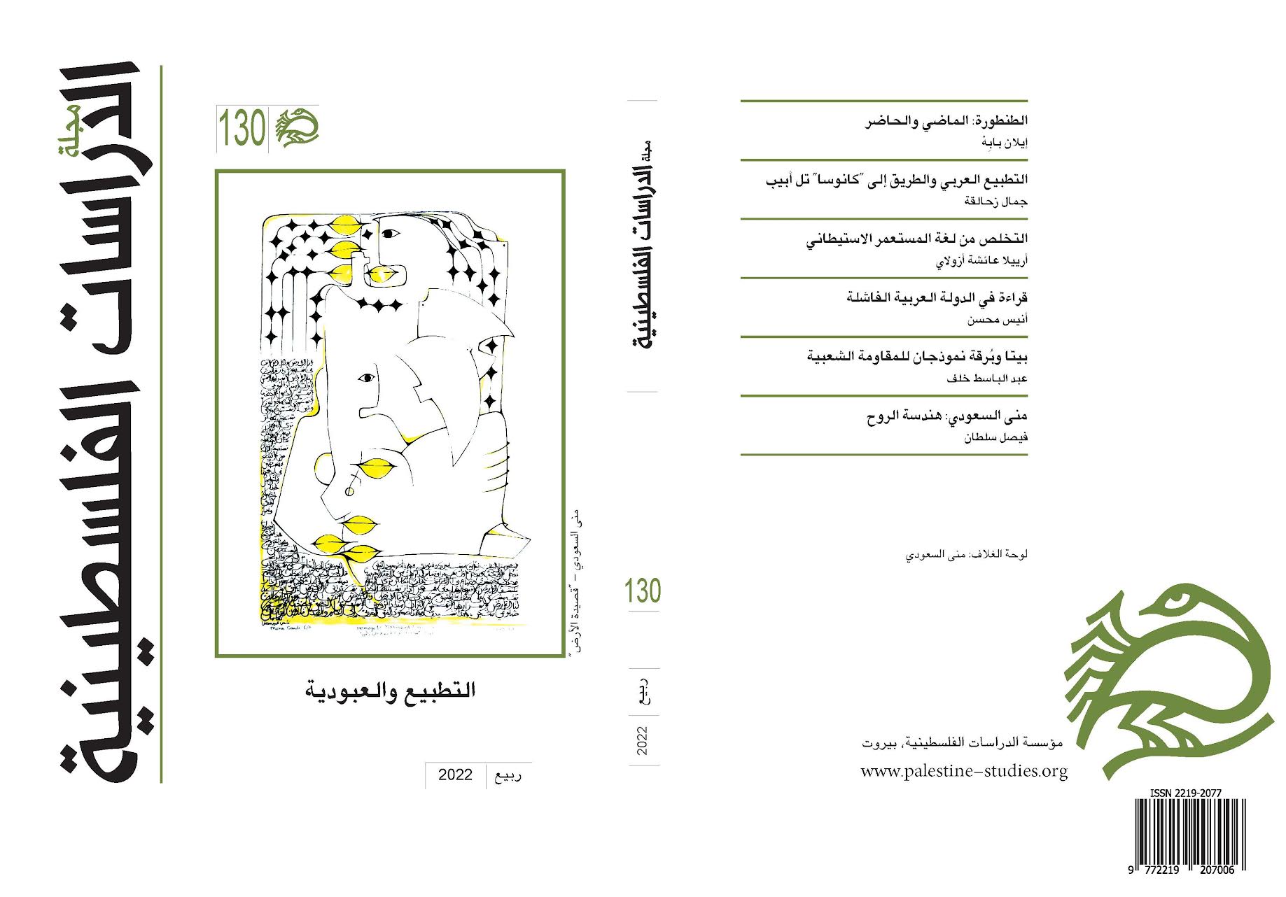 وقراءتان خاصتان: "عارف العارف وبدايات دولة شرق الأردن" لسليم تماري، و"الفن الفلسطيني المعاصر وسؤال الهوية" لتغريد عبد العال. ومراجعتان لكتابَين: عمرو سعد الدين "حركة مقاطعة إسرائيل BDS بحث في الطرق والقيم والتأثير" بقلم ساري حنفي، ومحمد أمارة "لغتي هويتي: نحو سياسة لغوية شمولية لمواجهة تحديات اللغة العربية في إسرائيل" بقلم عبد الرحمن مرعي.