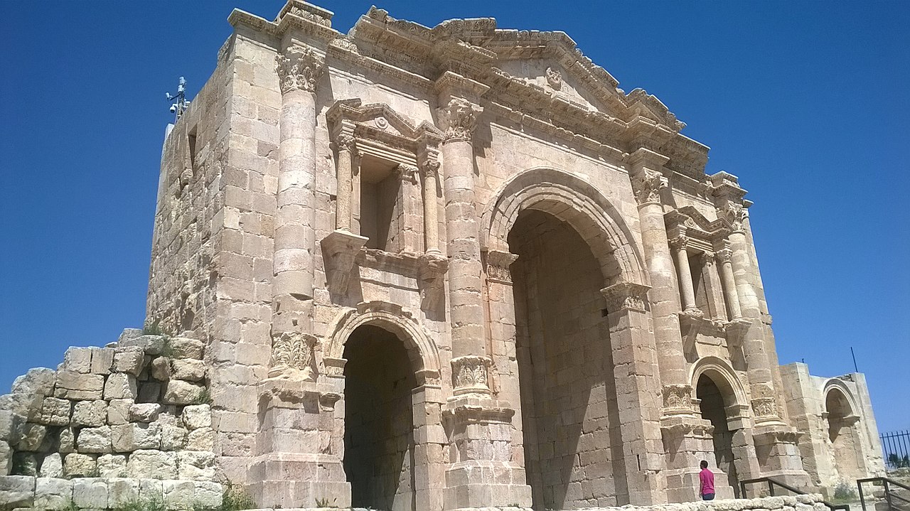 انطلق الباص من الجامعة الأردنية إلى صويلح ومنها إلى جرش عبر طريق رئيسي باتجاهين لا تفصلهما جزيرة حتى وصلنا إلى "قوس هدريان" في يوم 2/ 1/ 1969م. نزلنا من الباص الواحد تلو الآخر ننظر إلى هذا القوس الذي نصب تكريماً لهذا الامبراطور الرومي في عام 129/130 م، وكانت دائرة الآثار العامة الأردنية قد بدأت ترميم ما تهدم من هذا الصرح باشراف المرحوم المهندس يوسف العلمي وقد تمم العمل السيد عبدالمجيد مجلي.