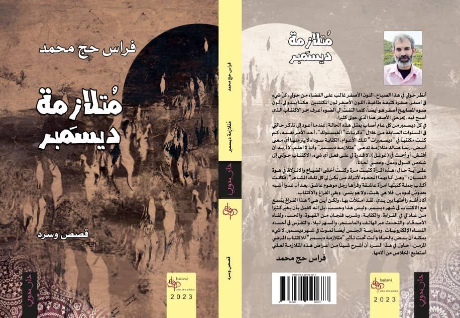 صدر عن دار بدوي للنشر والتوزيع في ألمانيا للكاتب فراس حج محمد كتاب "قصص وسرد" جديد بعنوان "متلازمة ديسمبر". جاء الكتاب في (220) صفحة تقريبا من القطع المتوسط، ويخصّ به الكاتب ثلاثاً من النساء؛ يسرد قصته معهن، وأشار إلى كل واحدة منهن في الإهداء بحرفين من حروف اسمها.