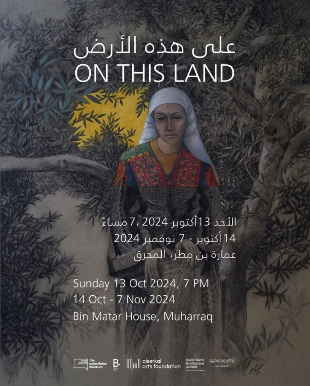 واضاف البيان الصحفي : يشكّل معرض "على هذه الأرض" منصّة للرواية الفلسطينيّة، حيث يصبح الفنّ وسيلة للمقاومة والتذكّر والأمل. يجمع المعرض صورًا من أرشيف المتحف الفلسطيني الرقمي، وأعمالًا فنيّة معاصرة من مجموعة مؤسّسة بارجيل للفنون ومجموعات خاصّة في البحرين، بحيث تشكّل، مجتمعةً، حوارًا عفويًّا بين الفنّ الحديث وأرشيفات الصور الفوتوغرافيّة القادمة من الماضي.