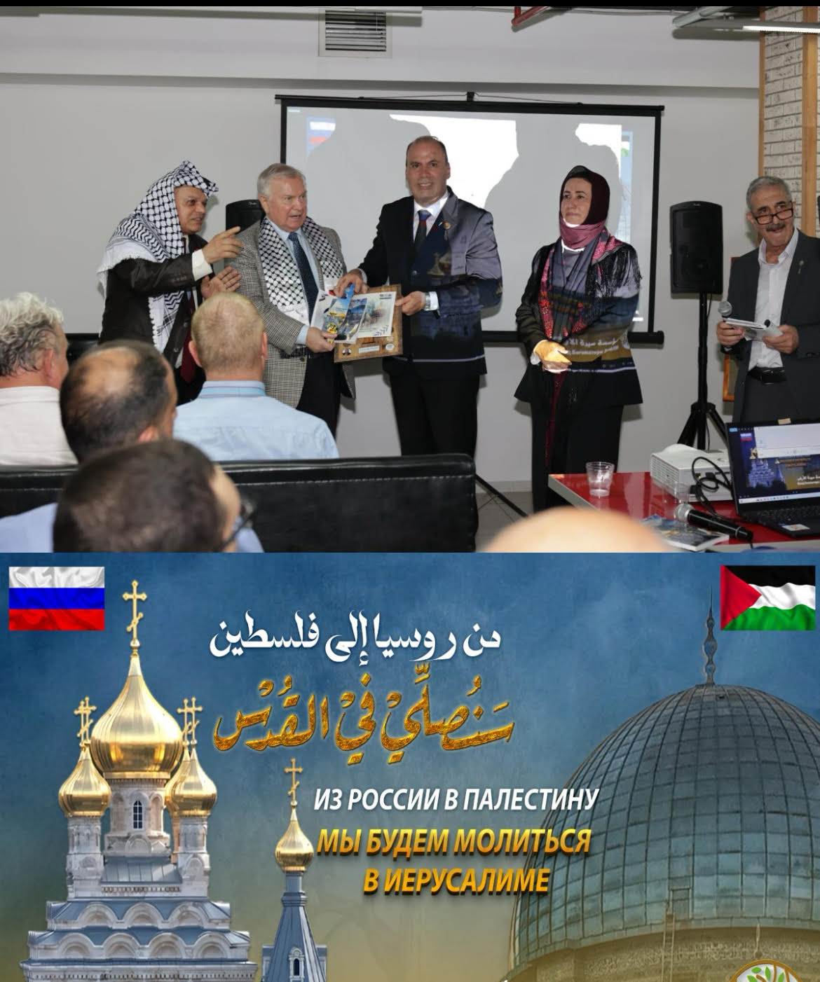 بعد ذلك، مُنح أصدقاء الشعب الفلسطيني شهادات "سيدة الأرض". وحصل بعضهم على بطاقات لأشجار زيتون غُرست تكريمًا لهم على جبل الزيتون المقدس (إيليون) في القدس. وكان من بينهم رئيس تحرير صحيفة "زافترا"، أ. أ. بروخانوف؛ ورئيس الجمعية الإمبراطورية الأرثوذكسية الفلسطينية، رئيس الوزراء السابق لروسيا الاتحادية س. ف. ستيباشين؛ ومدير متحف الإرميتاج الحكومي في سانت بطرسبرغ، م. ب. بيوتروفسكي؛ نائب وزير خارجية روسيا الاتحادية السابق، والممثل الخاص لرئيس روسيا في الشرق الأوسط إم. إل. بوغدانوف؛ نائب وزير خارجية روسيا الاتحادية إس. في. فيرشينين!، الرئيس العلمي لمعهد الاستشراق التابع لأكاديمية العلوم الروسية، الأكاديمي إف.إف. ناومكين، المدير العام لمركز التحليل "كاتيجون" نائب مدير معهد تسارغراد إم. آي. ياكوشيف؛ رئيس اتحاد عموم الشعب الروسي إس. إن. بابورين؛ رئيس لجنة الأمن العام والدبلوماسية العامة في حكومة موسكو إيه. إف. بيردنيكوف؛ كبير الباحثين في معهد الدراسات الشرقية التابع للأكاديمية الروسية للعلوم دي. في. ميكولسكي؛ رئيس مؤسسة روسار الخيرية أو. آي. فومين؛ أحد مؤسسي مؤسسة روسار الخيرية مدلل خوري؛ الصحفي الشهير إم. إل. شيفتشينكو؛ المراقب الدولي، الكاتب رامي الشاعر؛ رئيسة مشروع المعلومات "ميخفار. محور المقاومة" أ. أ. يجوفا؛ والصحفية الموهوبة م. أ. مونومينوفا وآخرون.