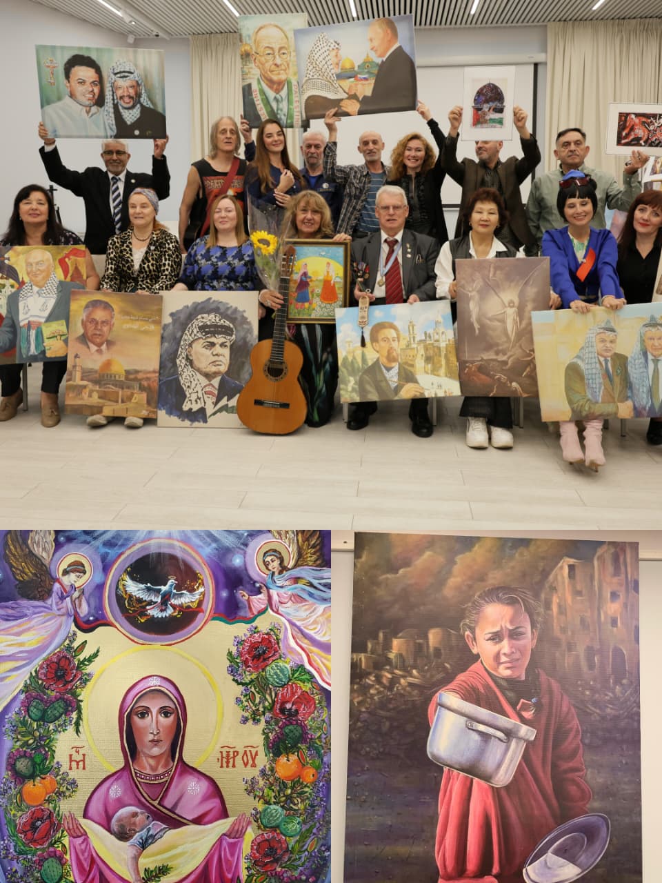 لذلك، أودّ مساعدة الجمعية الإمبراطورية الفلسطينية الأرثوذكسية بكل ما أوتيت من قوة. وبالتحديد، أرغب في المشاركة في معرض "روح فلسطين"، وربما الانضمام إليها مستقبلاً. أنا حاليًا عضو فخري في الأكاديمية الدولية للفنون المعاصرة، قسم الفنون الدينية. إليكم بعض أعمالي المُهداة لأطفال دونباس والكنيسة الأرثوذكسية الروسية.