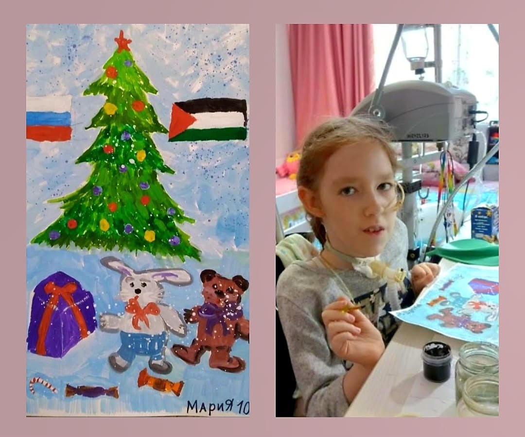 قبل قليل وصلتنى رسالة من معلمتها، الفنانة التشكيلية الروسية، "نتاليا شورنينا (كوراكينا)، والتى أرفقتها بصورة لها وفيديو قصير مدته ض ثوان فقط، أترككم لترون ما رسمته هذه الطفلة الملاك التى لا تستطيع العيش بدون جهاز التنفس الاصطناعى، لترون أحاسيس ومشاعر هذا الملاك تجاه فلسطين وشعبها وقضيتها.
