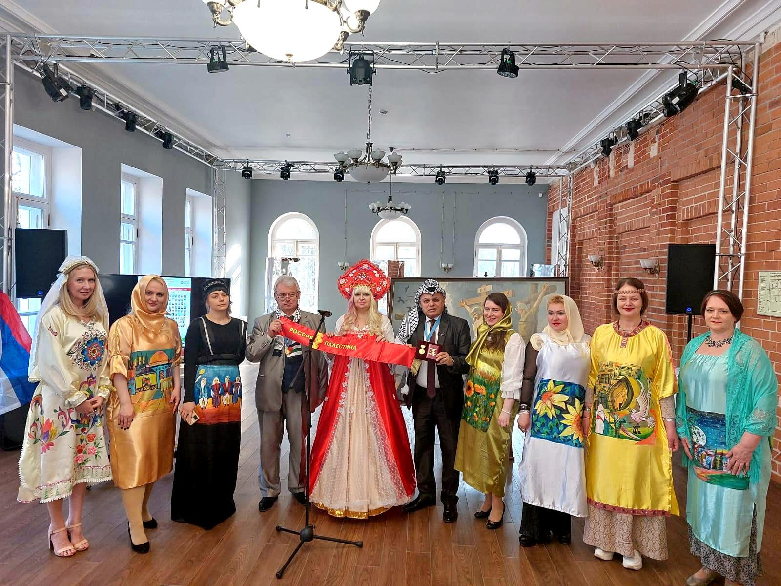موسكو- أخبار البلد - المراسل الخاص - فى الاحتفالات الكبرى التى تشهدها عشرات المدن الروسية حاليا ومنذ بداية هذا العام، والذي أعلنه، د. بسام فتحى البلعاوى، رئيس جمعية الصداقة الفلسطينية التشوفاشية الروسية، ورئيس الفرع الاقليمى التشوفاشي للجمعية الامبراطورية الارثوذكسية الفلسطينية، عاما الثقافة الفلسطينية، افتتح فى العاصمة الروسية موسكو، المعرض الروسي الفنى الدولي الخمسين لأجل فلسطين والذي حمل اسم، "روح فلسطين"، وجاء احياءا للذكرى الـ 75 للنكبة وفي احتفال مهيب وبحضور شخصيات اعتبارية لها وزنها فى الدولة الروسية، قام مستشار العاصمة الروسية موسكو، ورئيس لجنة الجوائز، البروفيسور الأكاديمي، "أندري ميخائيلوفيتش كريلوف"، بتسليم دكتور بلعاوي، جائزة الفنان الروسي العظيم، "نيكولاي كريلوف"، التى فاز بها الفنان الفلسطيني العريق طالب دويك فى 13 مارس 2023 .