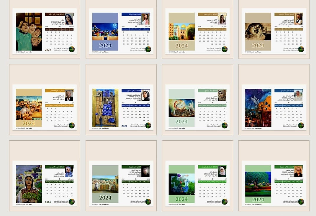 وعن أسماء المشاركين في هذه الرزنامة فلق قال الدويك " هم الفنانة .اميرة الصوص، الفنان انس دويك الفنانة شهد ادكيدك ، الفنان طالب دويك، الفنان ماهر العدسي ، الفنانة ميس داعور، الفنان نداء الجولاني ، الفنانة نور التميمي ، الفنانة نسرين ابو غزال ، الفنانة هبه حواش الفنان ميشيل صنصور،الفنانة وجدان صباح .