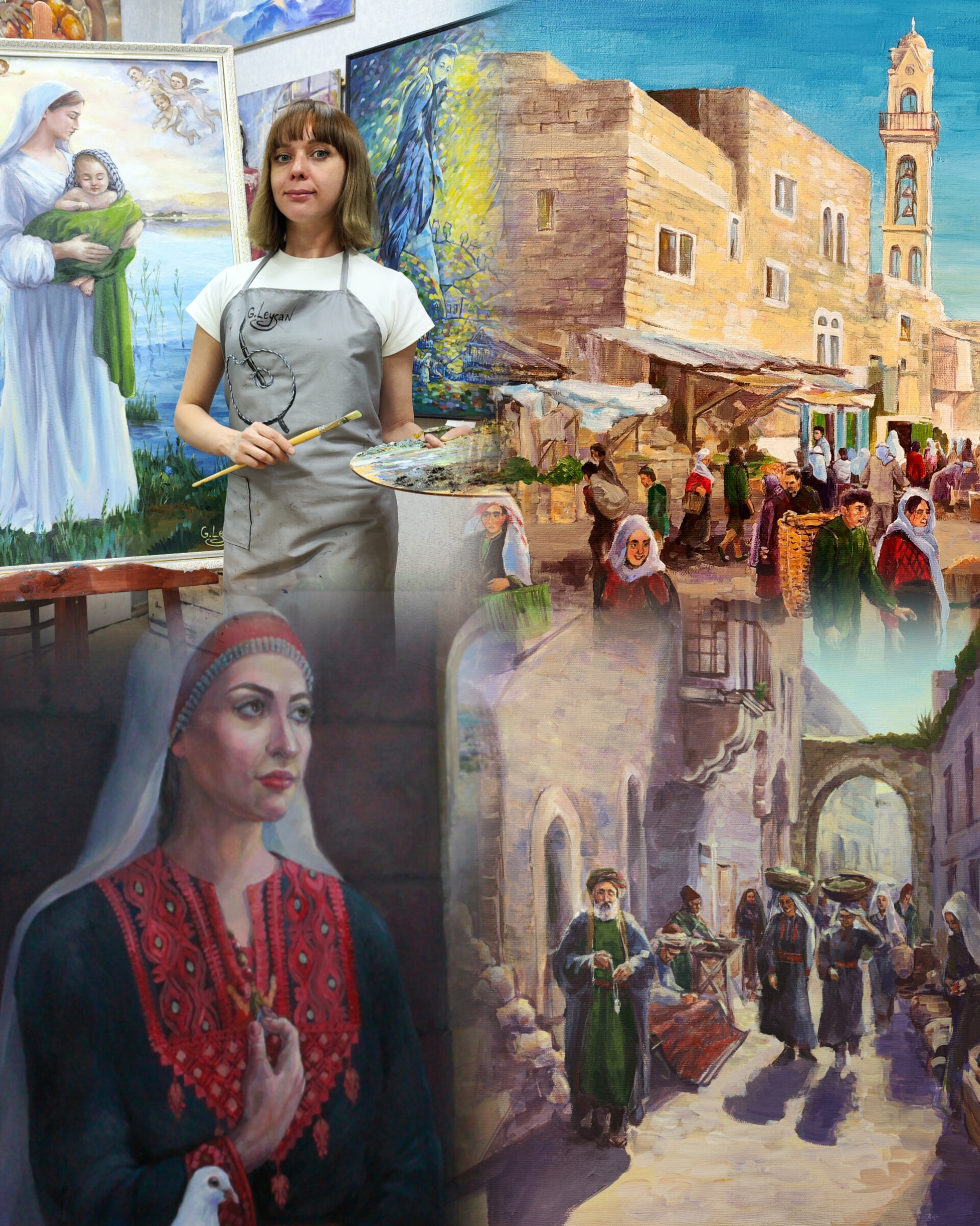 أعمالها الفنية مشبعة بحب التراث التاريخي، وخاصةً الأماكن المقدسة في الشرق الأوسط، التي تُعيد تصويرها بتبجيل وشعر ورمزية عميقة. "شوارع بيت لحم". تُعيد هذه السلسلة من الأعمال الفنية إحياء أجواء بيت لحم القديمة النابضة بالحياة، مدينة تتشابك فيها تقاليد عمرها آلاف السنين مع الحياة اليومية.