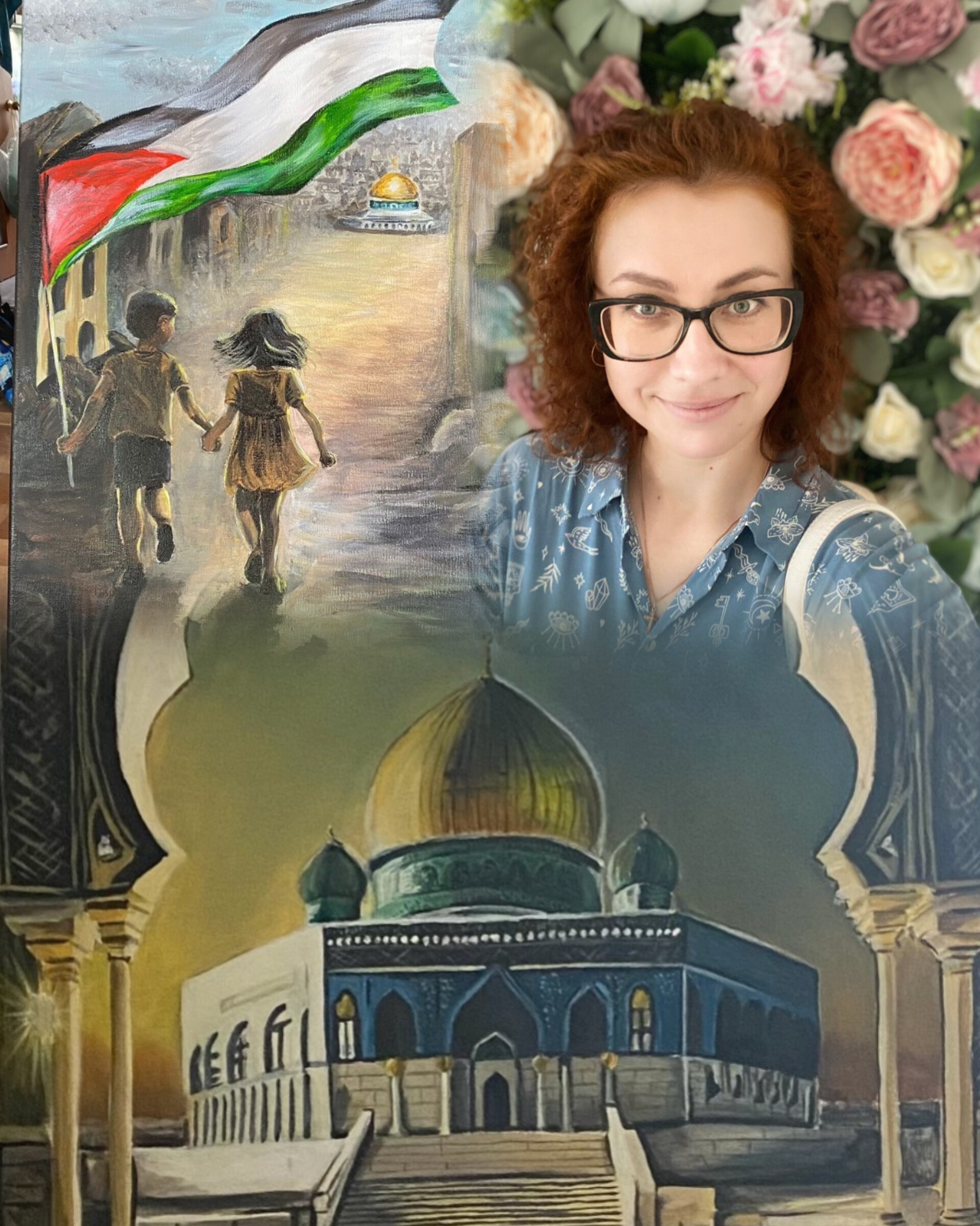 اللوحة الثانية، المنجزة لمعرض "فلسطين بعيون فنانين روس وأجانب"، "الأقصى".