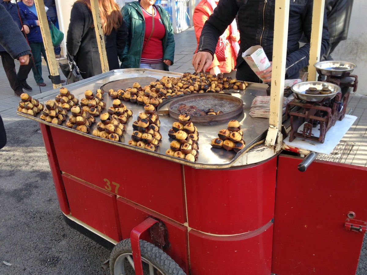 مع حلول فصل الخريف وبدء انخفاض درجات الحرارة، ينتشر باعة الكستناء المشوية الجائلين في ساحات وميادين إسطنبول الشهيرة، فيقبل عليها الأتراك والسياح الأجانب في هذا الوقت أكثر من أي وقت آخر من السنة.