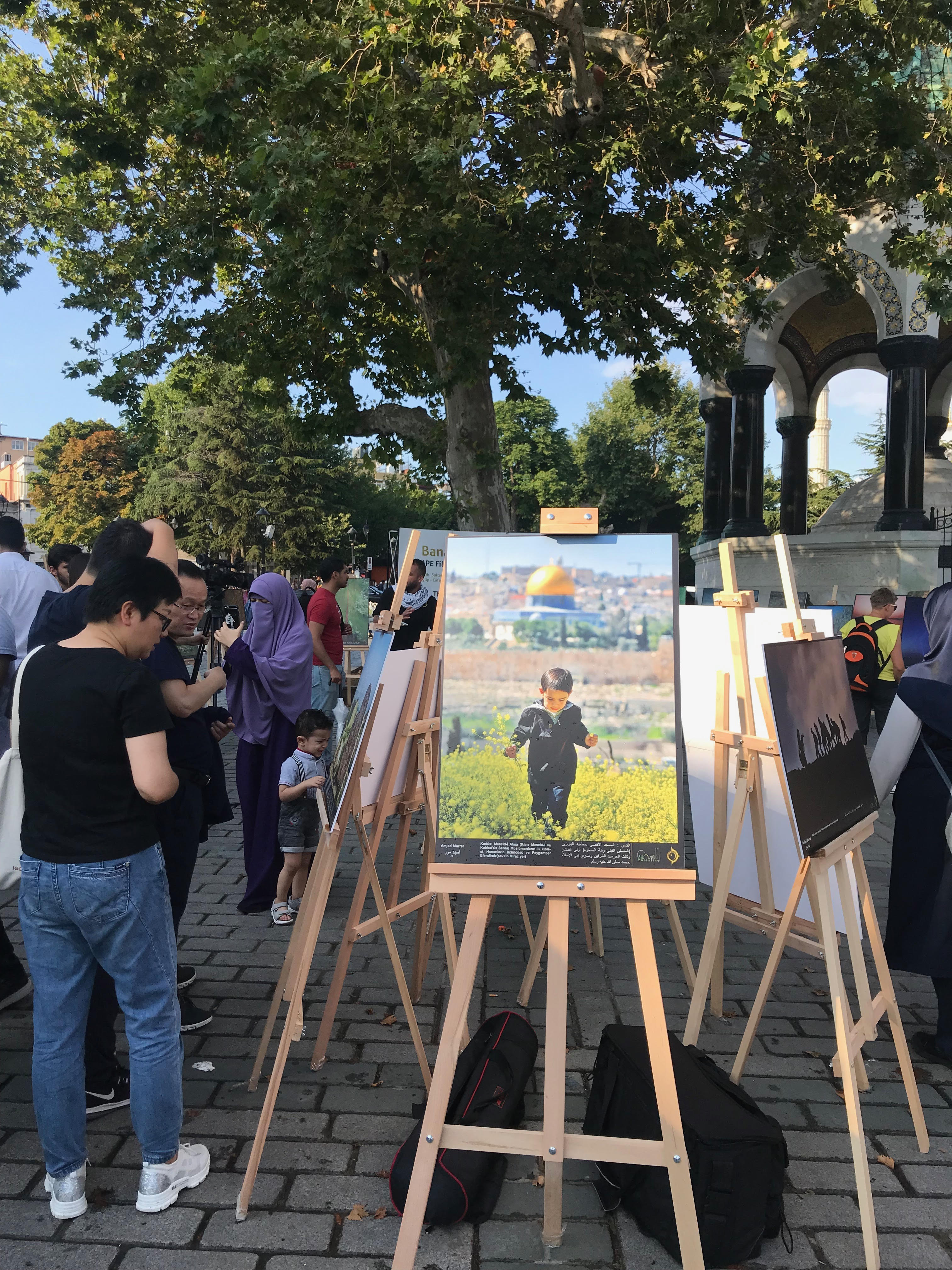 كل هذه العوامل كانت مؤشرا على الاقبال الكبير للمعرض الذي افتتح الاثنين في ساحة مسجد السلطان احمد او المسجد الأزرق ، ذلك المعرض الذي يحمل عنوان " احكى لي عن فلسطين " ويضم مجموعة اقل ما يقال عنها بانها صور مبدعة تتحدث عن فلسطين ولكن بعين فنان ومصور يعرف كيف يوثق اللحظة ليظهر الجانب الجمالي في هذا البلد الذي تكالبت عليه قوى الشر ، صور قال عنها " فراس جرار" المتحدث اللبق وبشغف كبير عن المعرض واحد مؤسسي فكرة الملتقى الفلسطيني للتصوير والاستكشاف : بان هذه الصور هي فيض من غيض ، فهناك عشرات الصور التي تحكى حكاية فلسطين بعين أخرى، ولكن نتيجة لضيق المساحة المخصصة للمعرض في إسطنبول فلقد تقرر حصر عدد الصور التي توحد التراب الفلسطيني من جنين شمالا وحتى غزة جنوبا مرور بقلب فلسطين والعرب والعالم الا وهي القدس .