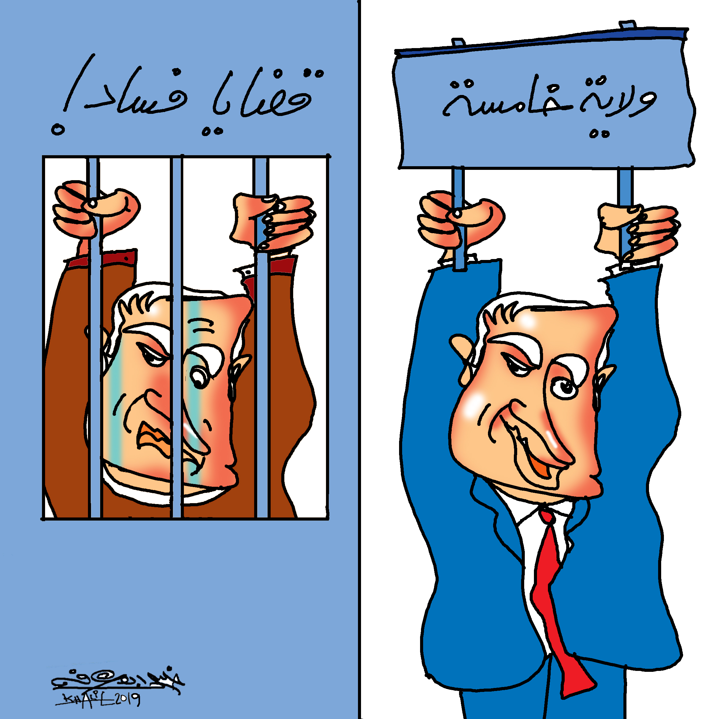 الفنان خليل أبو عرفة بريشته يرسم مستقبل نتنياهو على ضوء الانتخابات