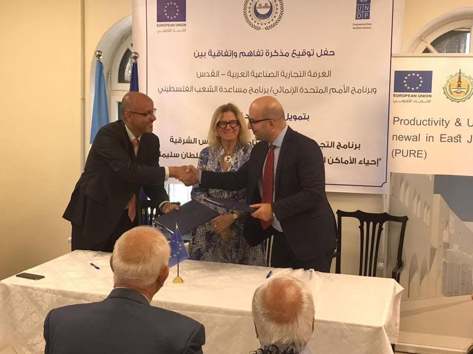 وجاء هذا في معرض تعليق التجار ل” اخبار البلد” على التوقيع على اتفاقية ومذكرة تفاهم بين الغرفة التجارية الصناعية العربية في القدس وبرنامج الأمم المتحدة الإنمائي لدعم مشروع التطوير التجاري والمساعدة القانونية والتخطيط المالي والمدني للشركات المستهدفة في شارعي صلاح الدين والسلطان سليمان كجزء من مشروع التجديد الحضري والانتاجي الممول ممن قبل الاتحاد الأوروبي والبنك الإسلامي للتنمية وحضر الحفل الذي جرى في معهد الولبرايت للبحث الاثري كل من "اليساندرا فيزر" رئيس الاتحاد الأوروبي للتعاون، و"فادي الهدمي" المدير العام للغرفة التجارية الصناعية العربية في القدس، و"روبيرتو فالنت" الممثل الخاص للمدير العام لبرنامج الأمم المتحدة الإنمائي، ونائب مدير عام الأوقاف الاسلامية الدكتور محمد ابراهيم نصر الدين وعدد من أعضاء مجلس الإدارة وهم السيد واصف ضاهر والحاج مصطفى ابو زهرة والسيد عدلي الحموري.