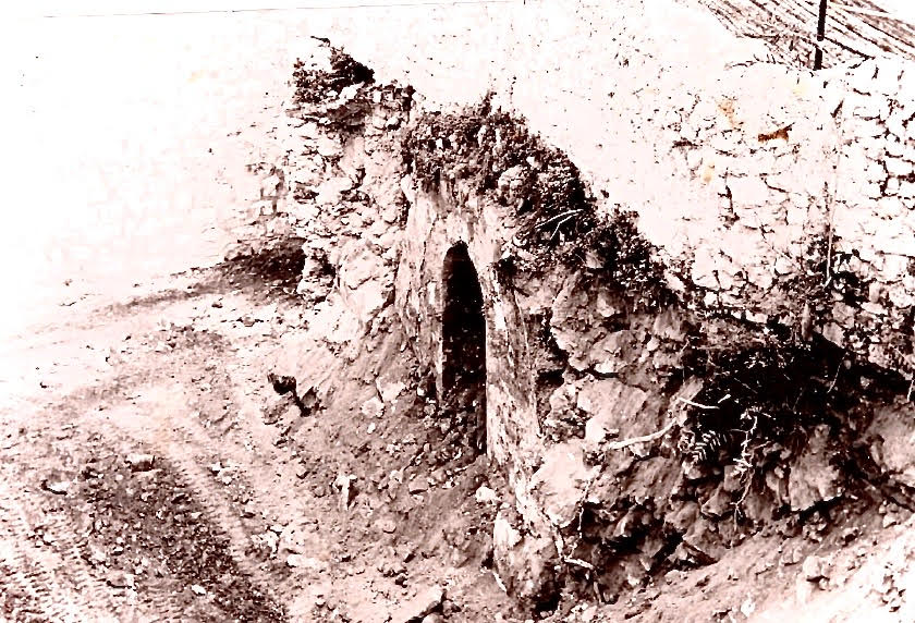 حجرية صغيرة عليها ثلاثة أبراج حجرية بنيت بعد ثقب السور
