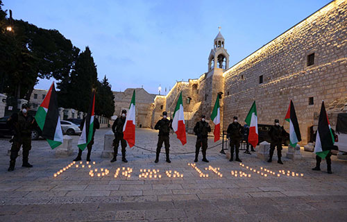 At this critical moment, a group of Bethlehemites – much like the chorus in Greek tragedy – formed a line in Manger Square in homage to the Italians. Cultural, historical, and religious affiliations with Italy underlie the gesture. The gesture, an expression of human solidarity with the Italians where the battle with the virus has reaped many victims, was followed by Augusta Victoria Hospital in Jerusalem that floodlit the monumental building atop the Mount of Olives with the colors of the Italian flag.