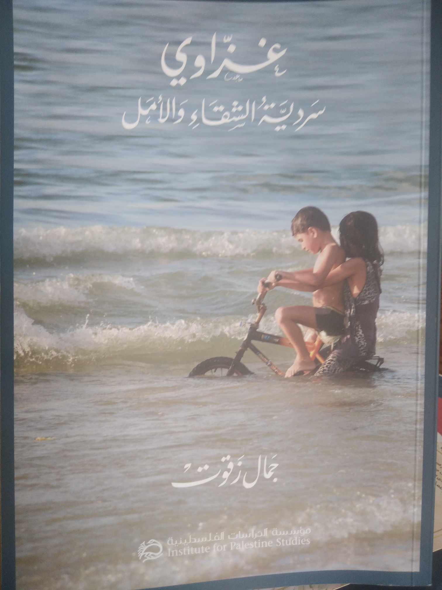 ما إن نقف عند العنوان: "غزاوي سردية الشقاء والأمل" لجمال زقوت نستمتع باسمين بصورة المصور الفوتوجرافي عمر القاطع، حيث يقود طفل دراجته الهوائية في البحر، تركب وراءه طفلة، لتمسك الأربع أيادي يمقود الدراجة التي تمخر ماء البحر بحث غطس العجلين معا، البحر، في مشهد فريد، جرب فيه الطفل والطفلة البحر فضاء للدراجة، (كما جربت هدى بركات يوما في روايتها البيروتية حارث البحر"، وتظهر ثلاث أمواج "الموجة تجري ورا الموجة عايزة تطولها"، بزبدها الأبيض، فظهر زبد اثنتين أبيض وسط الصورة وراء الطفل والطفلة على دراجتهما، تلك الدراجة التي أحالتها عبقريتهما الى دراجة بحرية، فيما الثالثة تصل الشاطئ، ربما لتبدأ جزرا آخر، وهكذا منذ كان البحر مدا وجزرا.