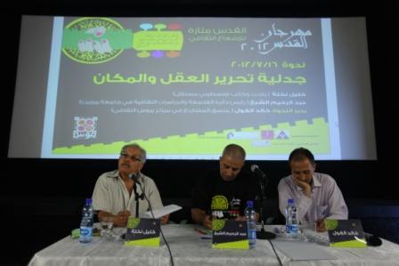 في ندوة عقدها مركز يبوس الثقافي ضمن مهرجان القدس 2012 بعنوان "جدلية تحرير العقل والمكان" شارك فيها باحثون ومتخصصون في التنمية الثقافية ومجتمع المعرفة وطرحت فيها اسئلة التحرر العقلي والمعرفي واحتمالات الانعتاق من قيد المكان في غمرة استحكام حلقات الهيمنة والاطباق على منافذ الحياة في مدينة القدس خصوصا وفلسطين عموما. افتتح الباحث والكاتب المستقل الدكتور "خليل نخلة" صاحب الكتاب المثير للجدل ( فلسطين ، وطن للبيع ) مداخلته التي حملت نفس عنوان الندوة بسؤال حول كيفية تحويل السياسات التربوية الرسمية إلى فكر تنموي- تحرري-مقاوم، إعتمادا على مواردنا وطاقاتنا الذاتية. ومهد "نخلة" للاجابة على هذا السؤال بالتأكيد على اننا منذ منتصف القرن الماضي ونحن شهود لعملية ممنهجة لإعادة هندسة وعينا الوطني. هدفها إستحداث خطاب مهيمن لتزييف الوعي الوطني، والقبول بتذويت القهر والهزيمة والوضع الكولونيالي والفصل العنصري والطبقي كحالة طبيعية.